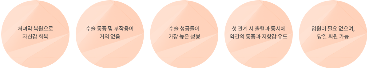 SLH는 모양뿐만 아니라 레이져를 이용한 특수한 수술기법으로 미세혈관의 재생을 유도함으로써 본래의 처녀막을 되찾을 수 있도록 해주는 매우 섬세한 수술입니다